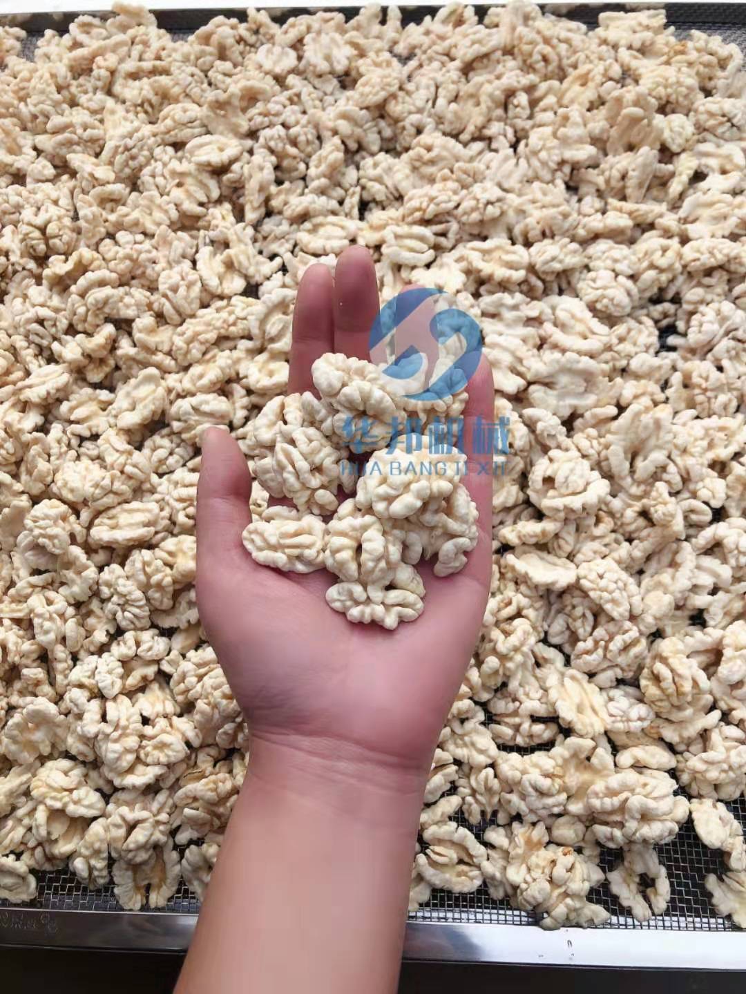 華邦核桃仁脫皮機,專門針對核桃仁發苦發澀薄皮去除,去皮率高達98%以上,并且果仁完整,設備采用滾筒設計,占地面積小,產量大,小型去皮機60kg/小時,中型去皮機100kg/小時,大型流水線日產1-20噸均有供應。