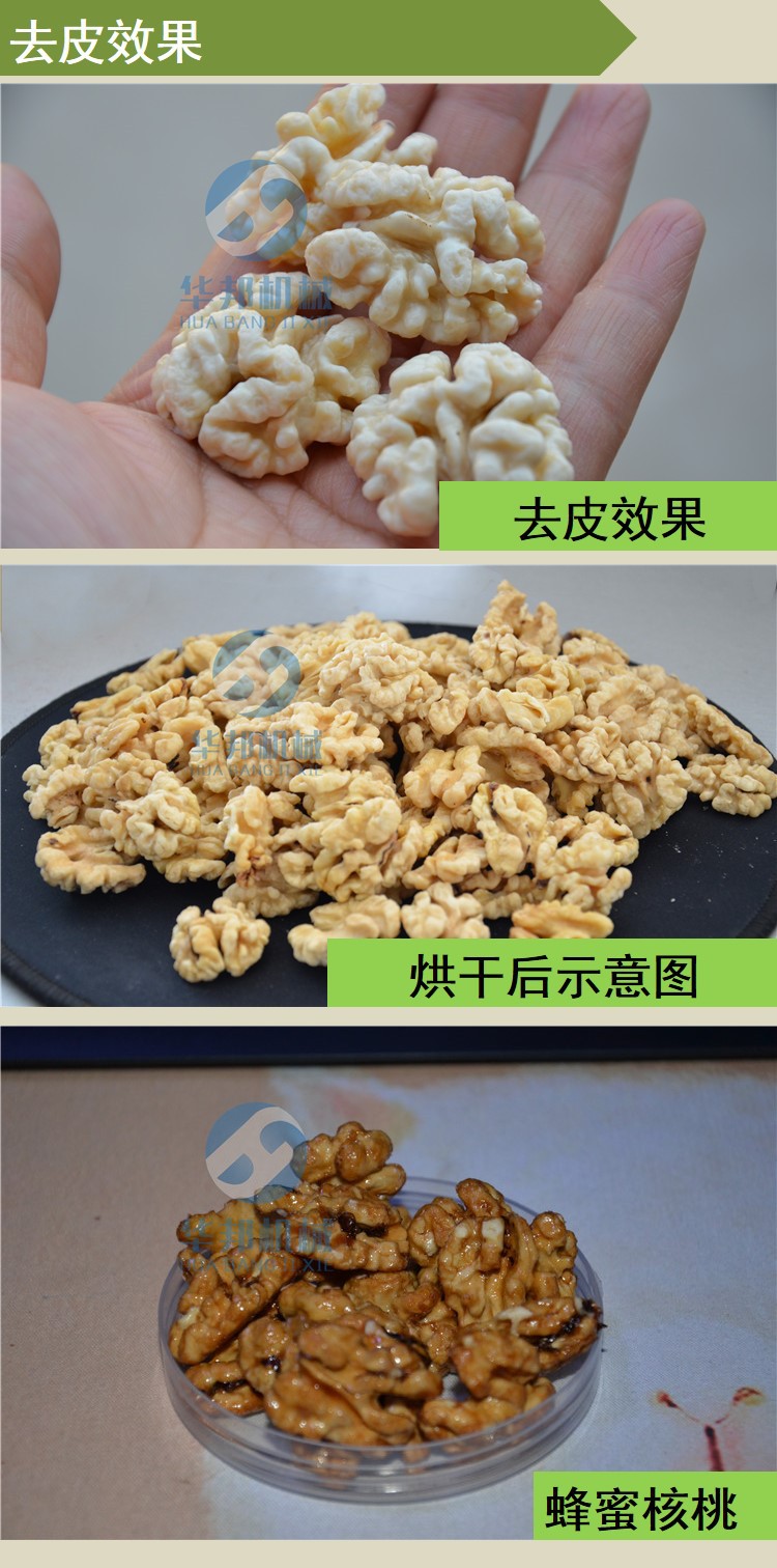 核桃仁營養豐富,具有健腦補腦的作用,有效的防止細胞老化,增強記憶力,老少皆宜,孕婦都能食用。但核桃仁內衣發苦發澀,而且不好去除,生產出來的產品口感不好,諸城華邦機械有限公司研發的純物理核桃仁去皮機,技術成熟,去皮效率高,循環水設計,節水節能,適合品種的核桃。