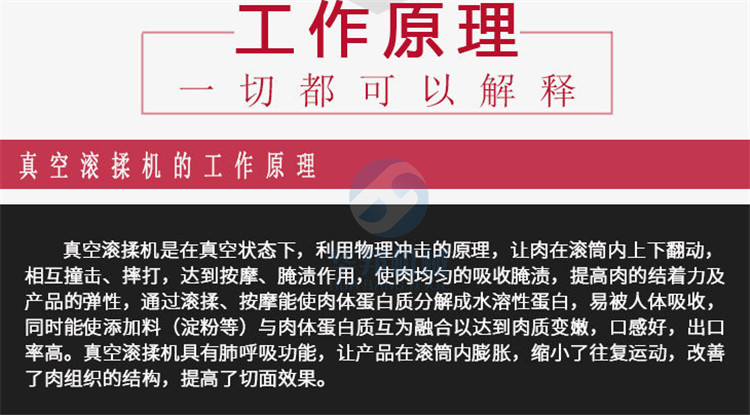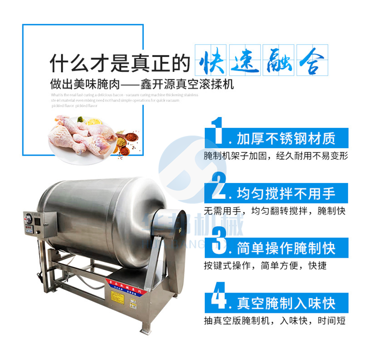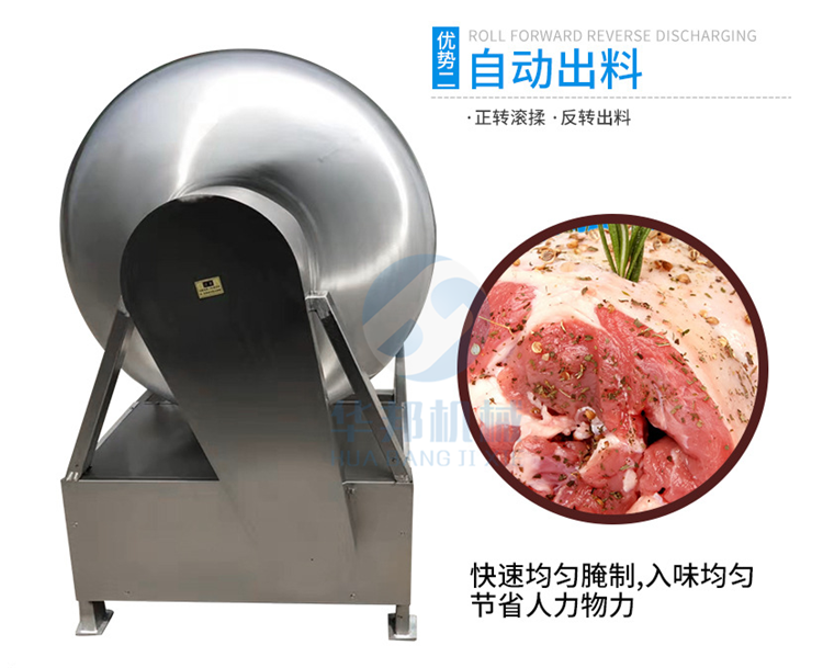 如果您還在為牛肉雞肉鴨肉腌制時間長發愁,如果您還在苦苦尋找快速腌制機,如果您想提高您的產品產量,那您就需要采購一臺適合您產量的真空滾揉機,采用呼吸式一呼一吸快速腌制的方法,通過對產品的摔打,滾揉,讓您的產品更細膩,腌制速度越快。本來您需要腌制一星期的產品,用我們的滾揉機,您可以在一小時內腌制成功,并且比自然腌制的效果更好。