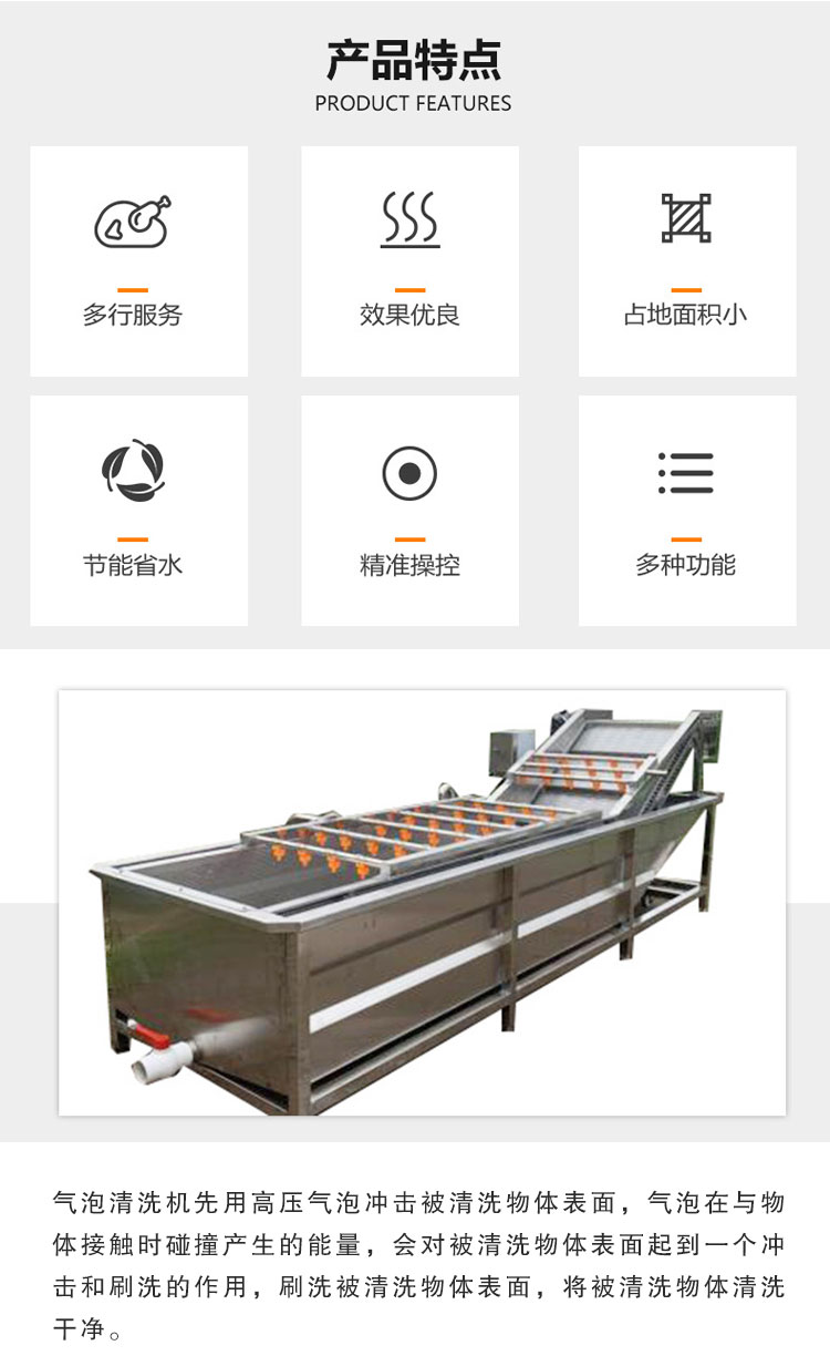 清洗機采用氣泡+噴淋雙重清洗的方式,以去除腰果表面的灰塵、細菌等污染物,確保腰果的衛生安全。