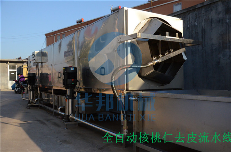 核桃仁去皮機,是用不銹鋼作為分滾筒的對輥軸,利用速差揉搓原理制造,配備了高性能減速電機和鏈輪傳動系統,工作當中可根據核桃仁的大小自由調節滾筒轉動的頻率,一道滾揉搓工序,去皮率達95%以上,同時配有二次清洗,可以清除核桃仁浮皮雜質.該機有兩種型號2000型,3000型,每小時產量分別是60公斤,150公斤,此設備操作方便,產量高,核桃仁去皮后損失小,是核桃仁的理想設備?。?/span>