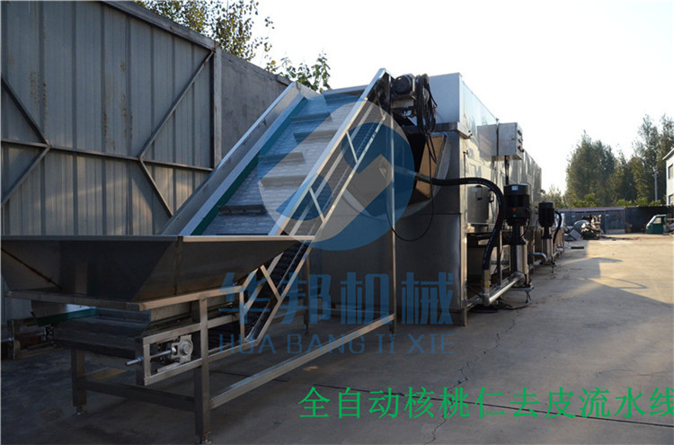 核桃仁加工成套設備包括核桃仁去皮機,核桃仁清洗機,核桃仁烘箱??膳涮壮闪魉€,自動化程度高,去皮效果好。